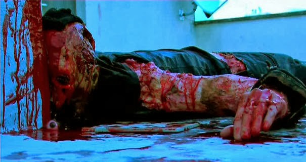 Remember when the Italians were the masters of splatter? The ’80s heyday of Fulci, Argento, Lenzi and Deodato is long behind us, but there’s a new fellow in town named Emanuele De Santi who invites happy comparisons to these past masters of the red sauce. One catches a glimpse of the man’s work ethic in his chiseled abs and bulging biceps (he stars as well as writing and directing), but this is clearly no empty-headed Chippendale dancer. Santi unloads a double helping of stylish gore and gory style in his debut feature, a jaw-dropping (and jaw shattering) extravaganza that evokes an especially bloodsoaked manga, complete with stark, panel-ready imagery.